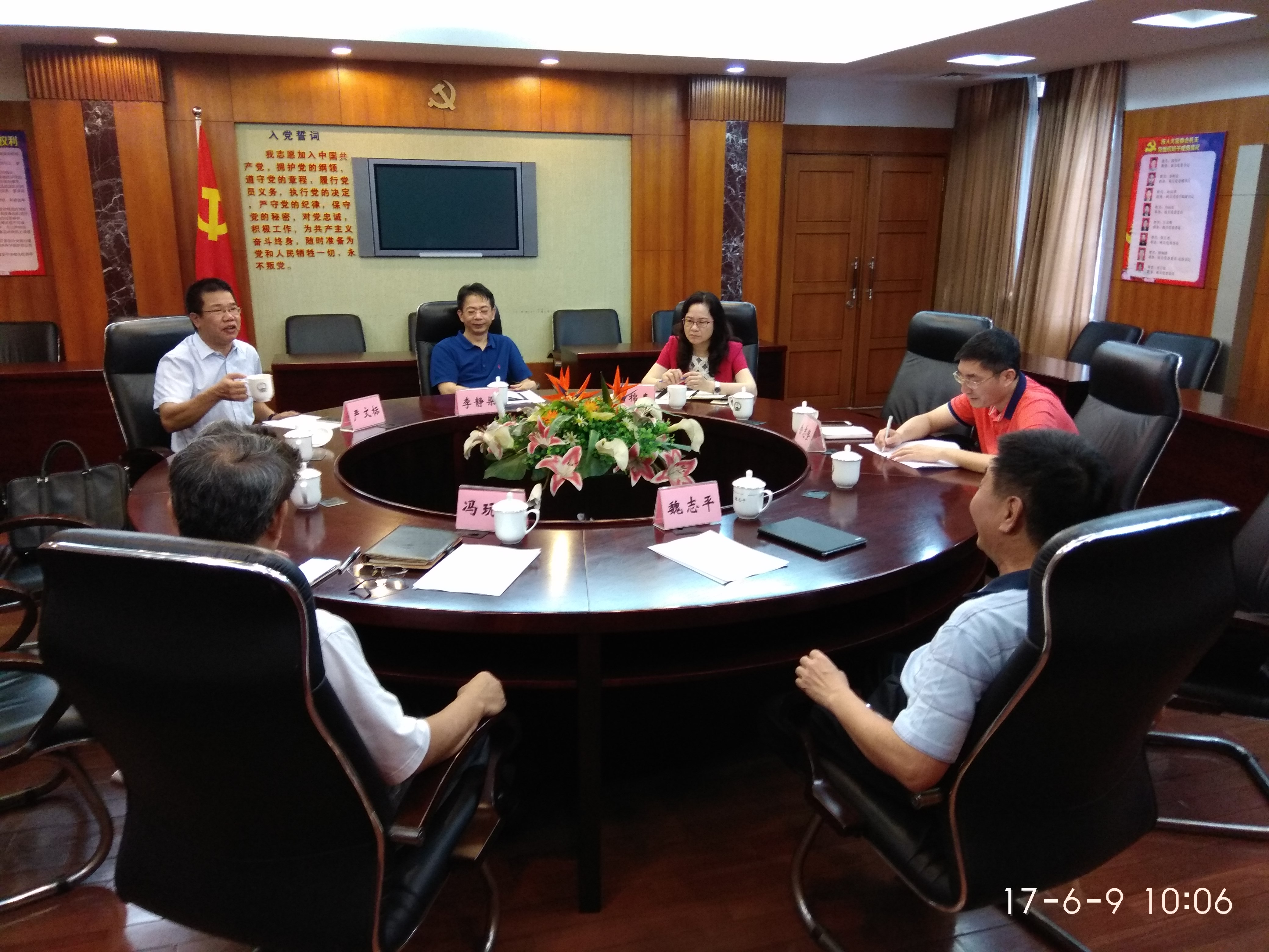 2017年6月9日,市人大常委会副主任魏志平,法制工委有关负责同志与我会会长刘棉春,副会长严文标、李静染等召开座谈会,商议如何进一步加强合作,共同推进我市地方立法工作。