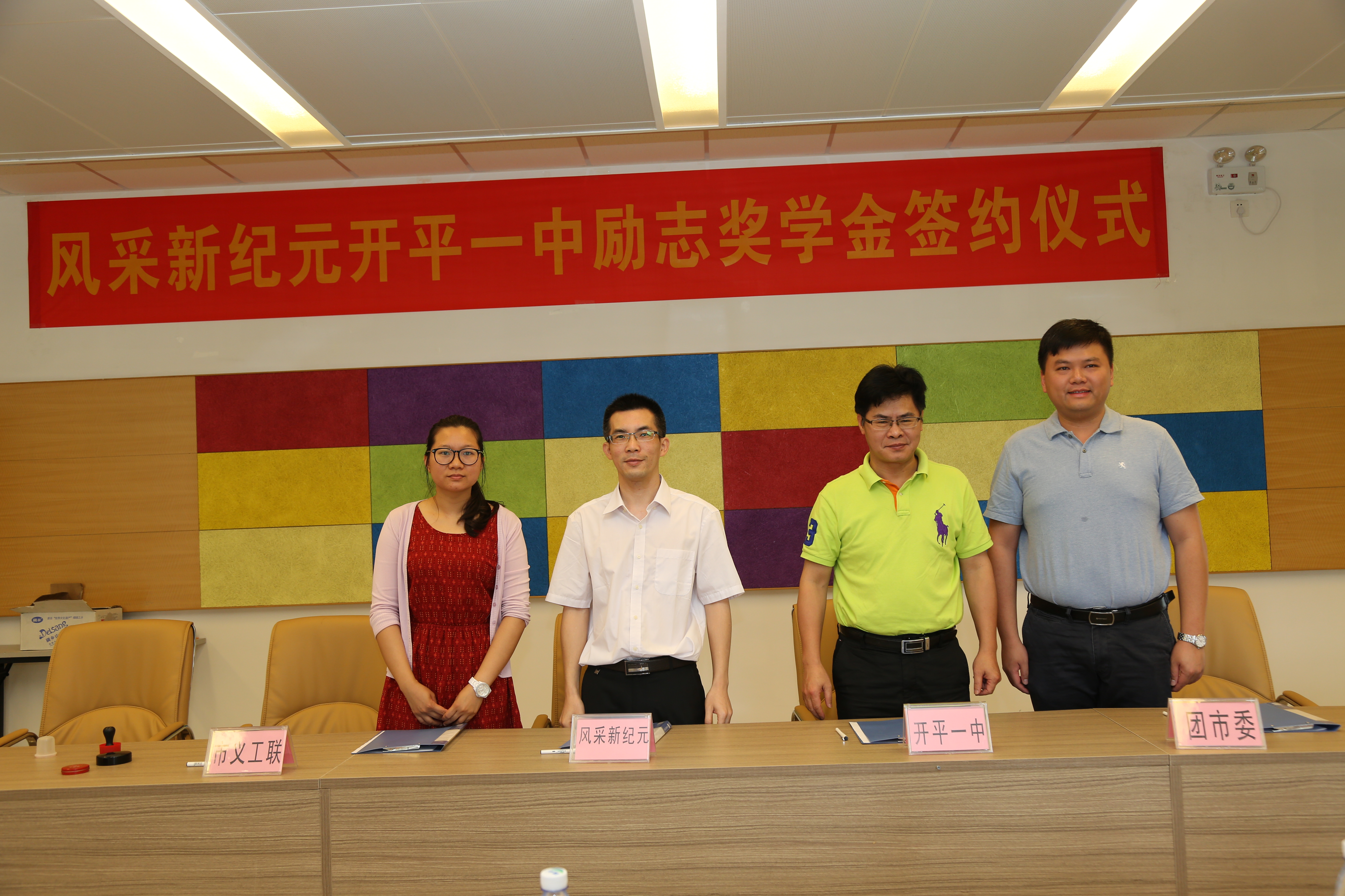2017年5月16日上午,共青团开平市委、开平市义工联、开平市第一中学、广东风采新纪元律师事务所在开平市青少年宫举行了备忘录签署仪式,风采新纪元开平一中励志奖学金项目正式启动。