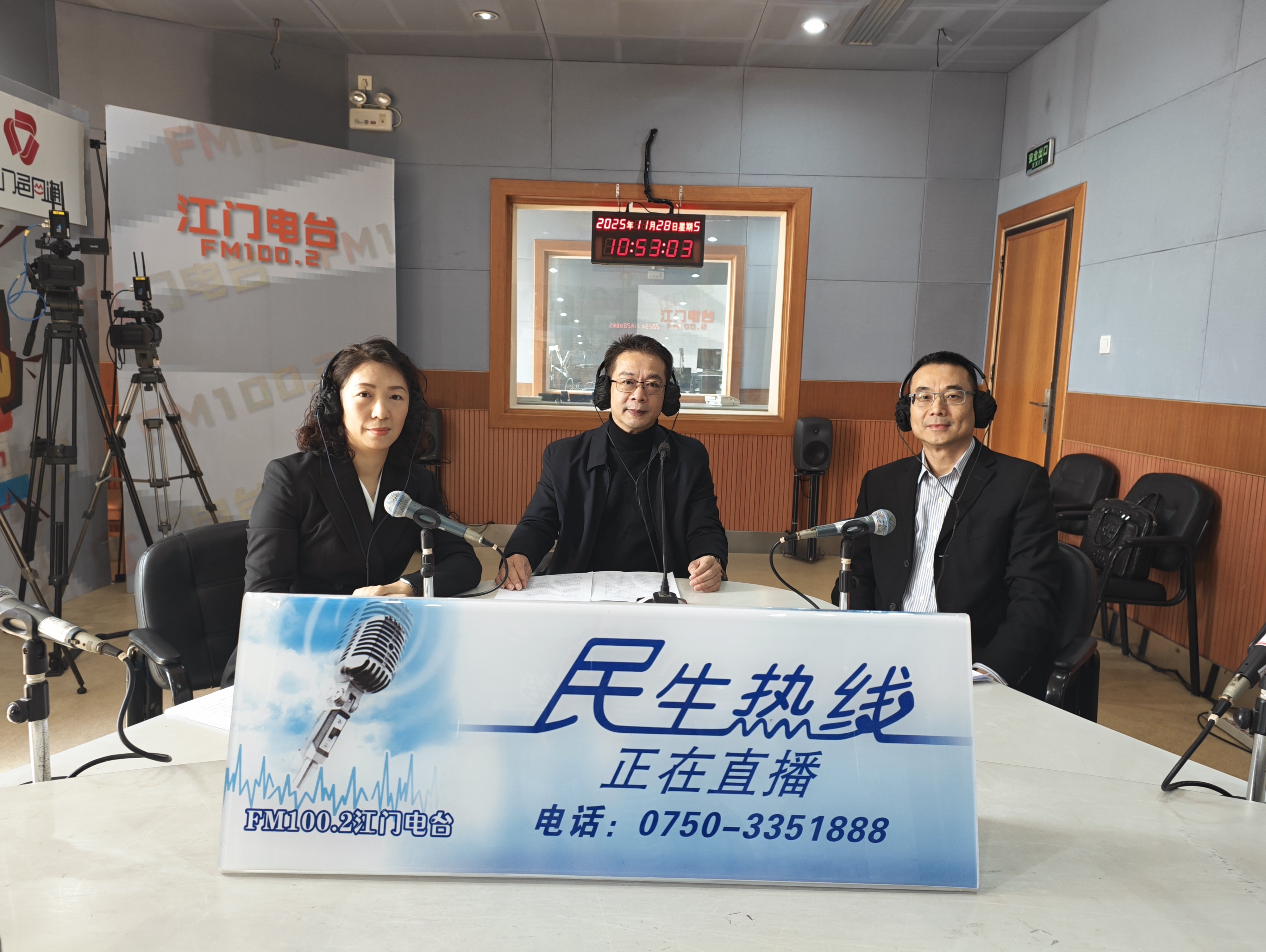 为深入学习贯彻习近平总书记重要讲话精神和全国两会精神,结合总书记对广东系列重要讲话和重要指示精神,全面贯彻落实省委“1310”具体部署和市委“1+6+3”工作安排,坚持以人民为中心的发展思想,补齐民生领域短板,努力营造和谐稳定的社会环境,持续提升群众的满意度和幸福感,根据市直机关工委、江门广播电台的安排,我会于2025年11月28日上午11点至12点参加了第949期江门广播电台《民生热线》节目的上线。我会会长李静染,副会长高慧嫦、许炳权参与了节目的直播。