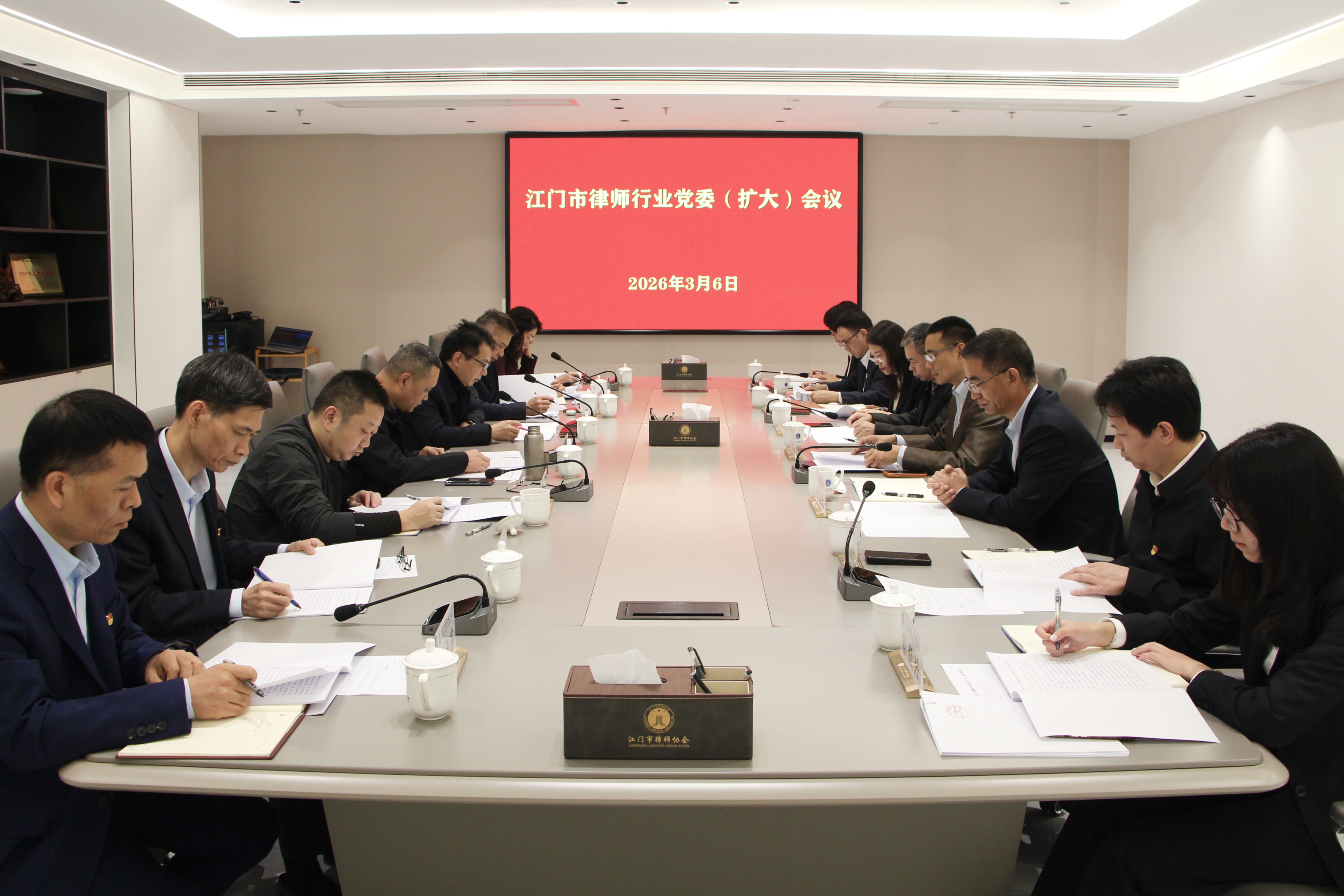 3月6日下午,市律师行业党委召开扩大会议,专题学习贯彻习近平总书记关于树立和践行正确政绩观的重要论述,认真学习习近平总书记重要文章《当前经济工作的重点任务》《让愿担当、敢担当、善担当蔚然成风》以及《习近平法治文选》(第一卷)部分篇目,重点传达学习中共中央办公厅《关于在全党开展树立和践行正确政绩观学习教育的通知》精神,贯彻落实全省高质量发展大会及省市有关会议要求,研究部署我市律师行业贯彻落实具体举措。市司法局党组成员、市律师行业党委专职副书记彭高宴主持会议,市律师行业党委副书记、市律师协会会长李静染及党委其他班子成员参加会议;市司法局律管科负责同志、市律师协会其他副会长等列席会议。