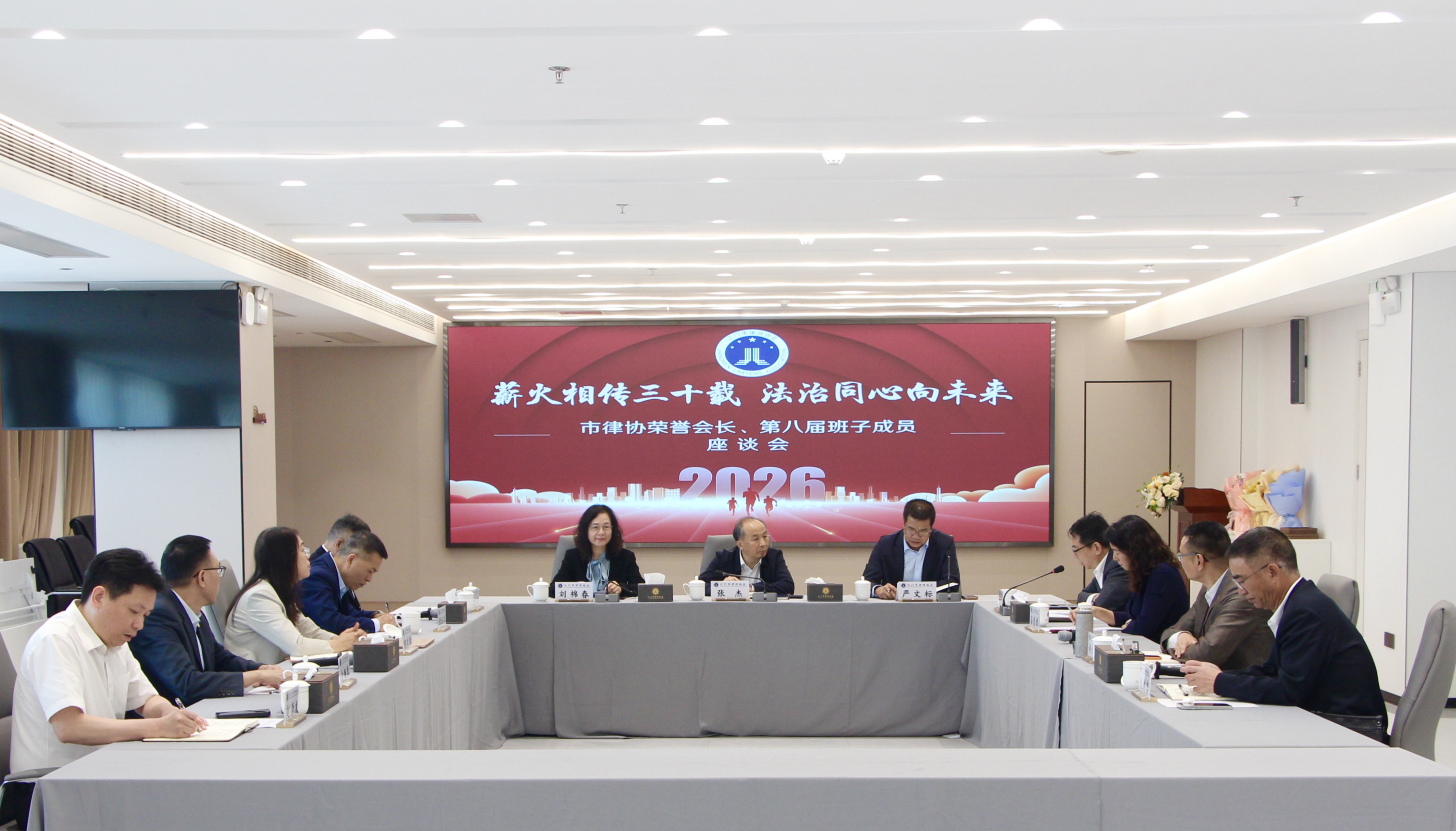 2026年3月18日下午,市律协召开“薪火相传三十载,法治同心向未来”——荣誉会长、第八届班子成员座谈会,共叙行业情谊、共商发展大计、共话传承使命。荣誉会长张杰、严文标、刘棉春,第八届全体正副会长,监事长邝日勇参加了会议。会议由李静染会长主持。
