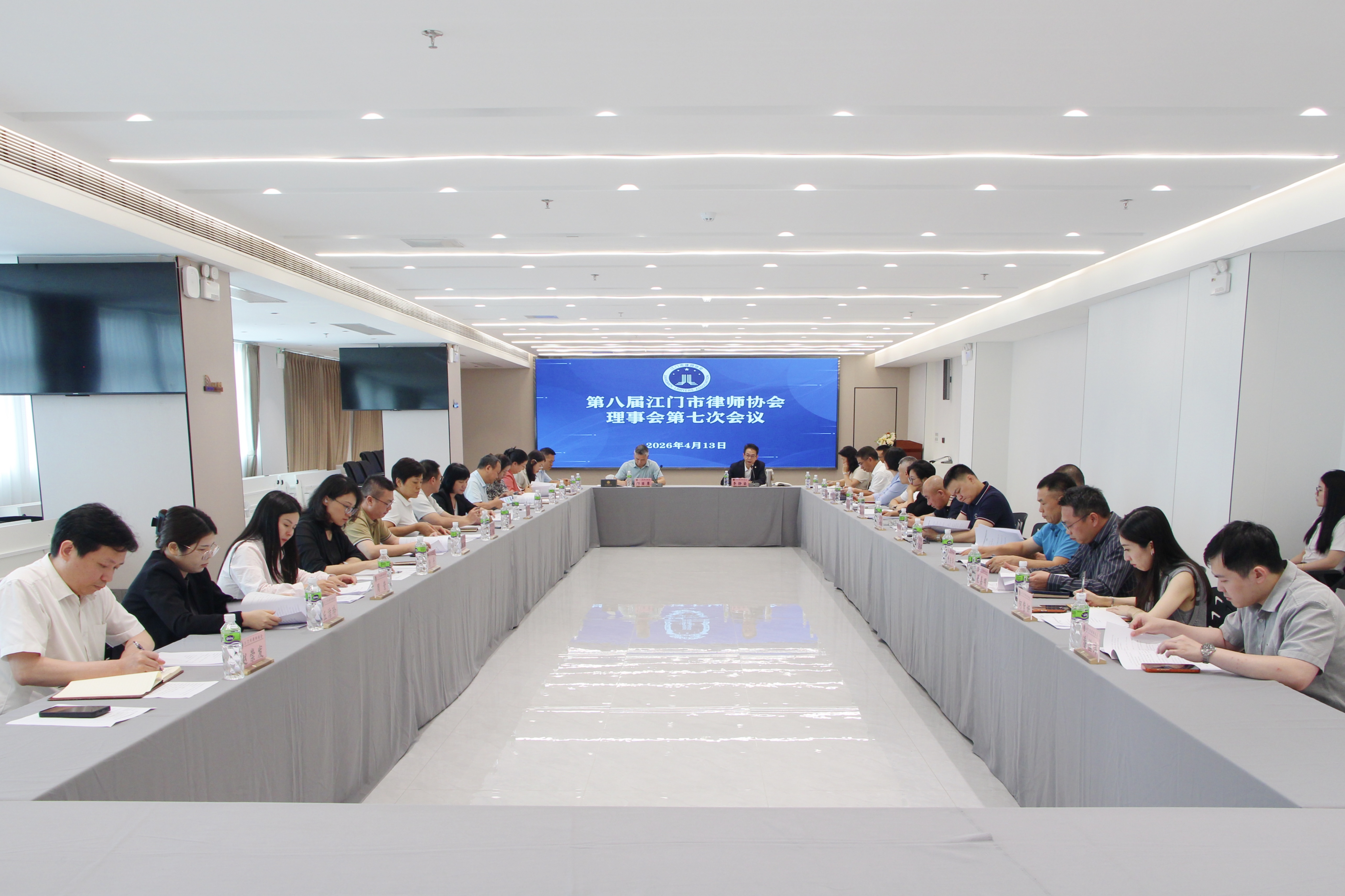 2026年4月13日下午,江门市律师协会第八届理事会第七次会议顺利召开。监事长邝日勇等列席会议。会议由李静染会长主持。